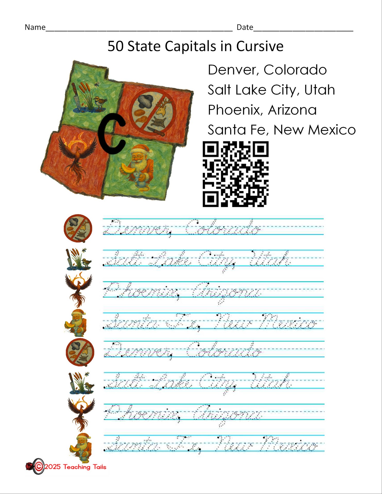 Capitals: Denver, Salt Lake City, Phoenix and Santa Fe