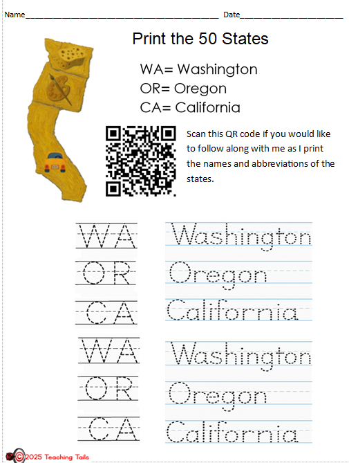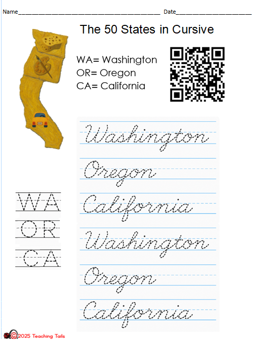 Watch students engage with these lessons by following QR codes within this resource! Witness the seamless fusion of book pages with custom videos for state clusters, offering an immersive learning experience. QR codes on handouts lead students to instructional videos showcasing the correct techniques for writing the states and capitals in print or cursive. They are busy learning while you are multi-tasking, crafting your own magical lessons, grading papers, emailing parents, or maybe even getting a much needed bathroom break!