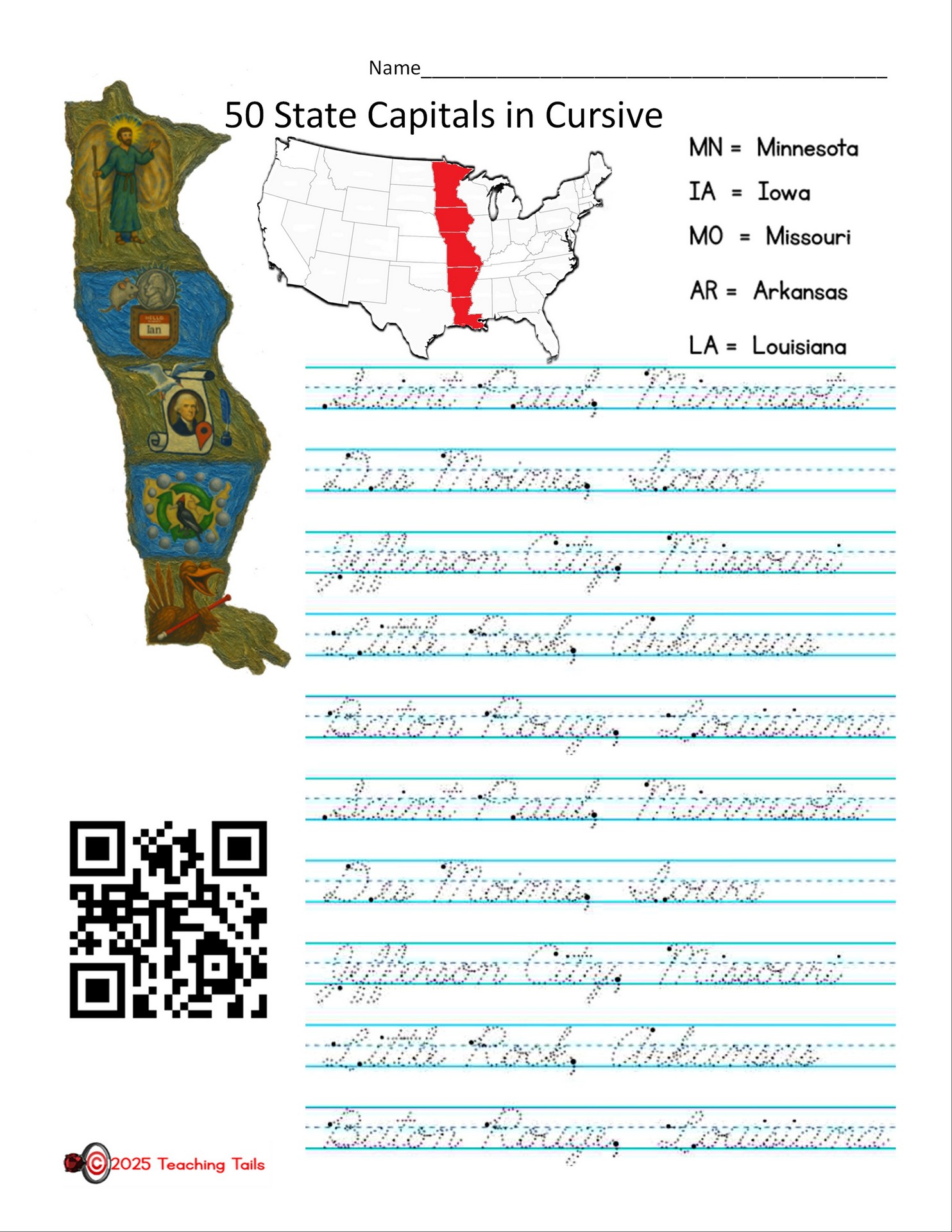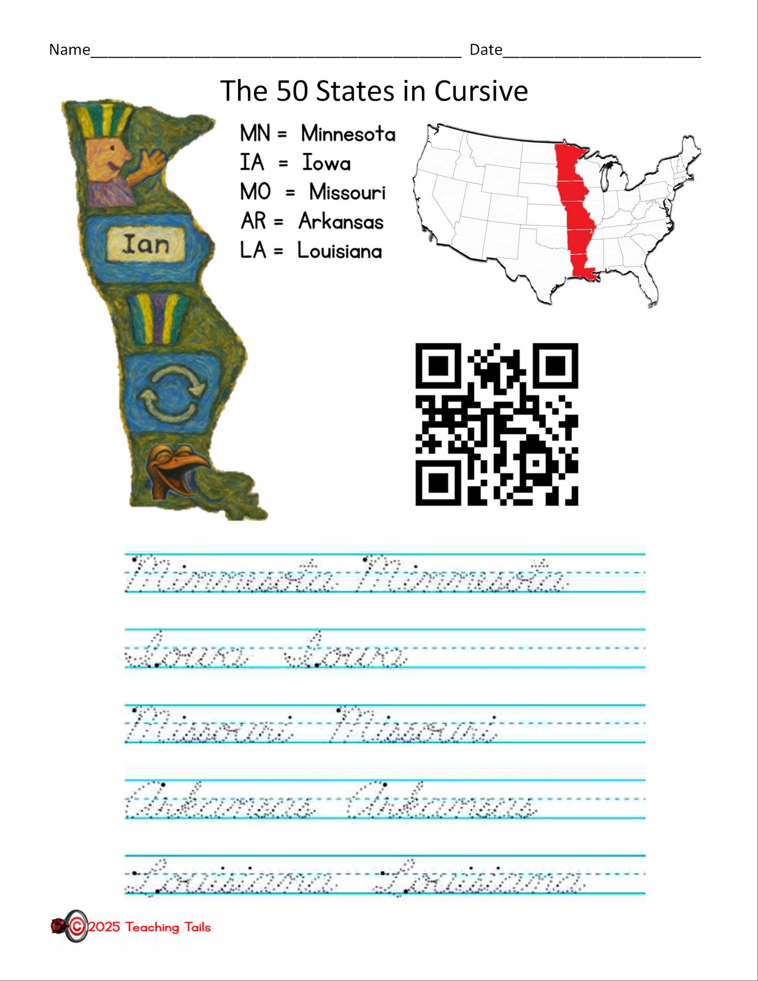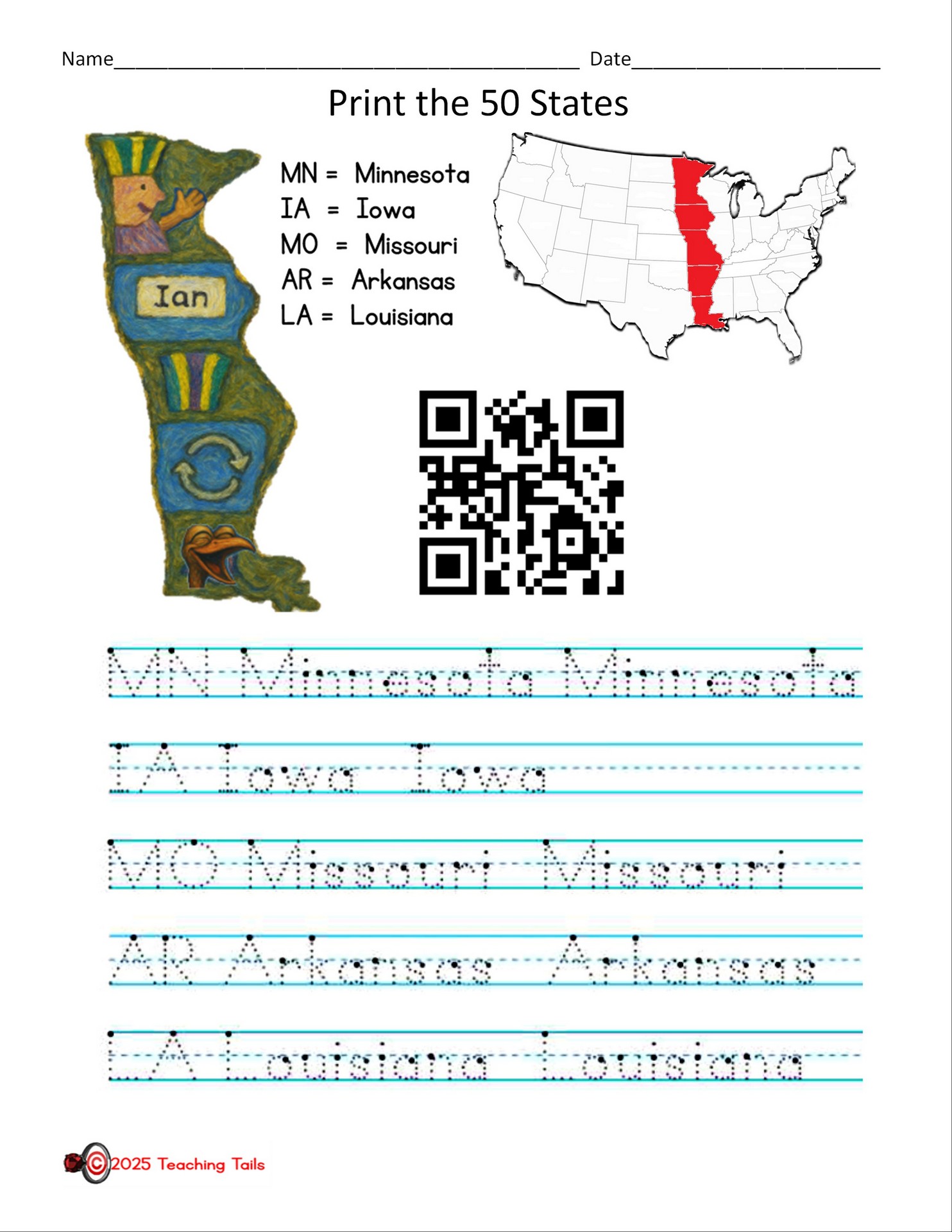 Looking for 50 States handouts and handwriting practice?